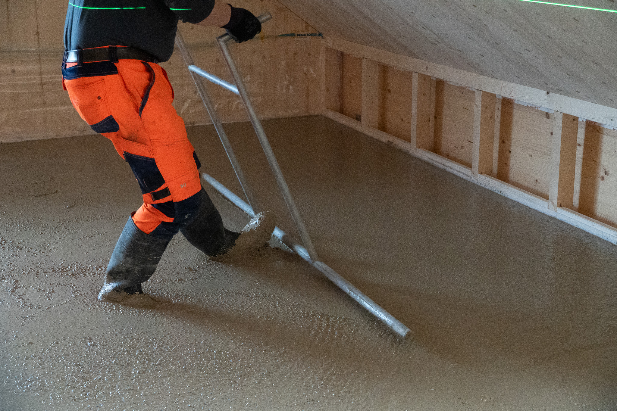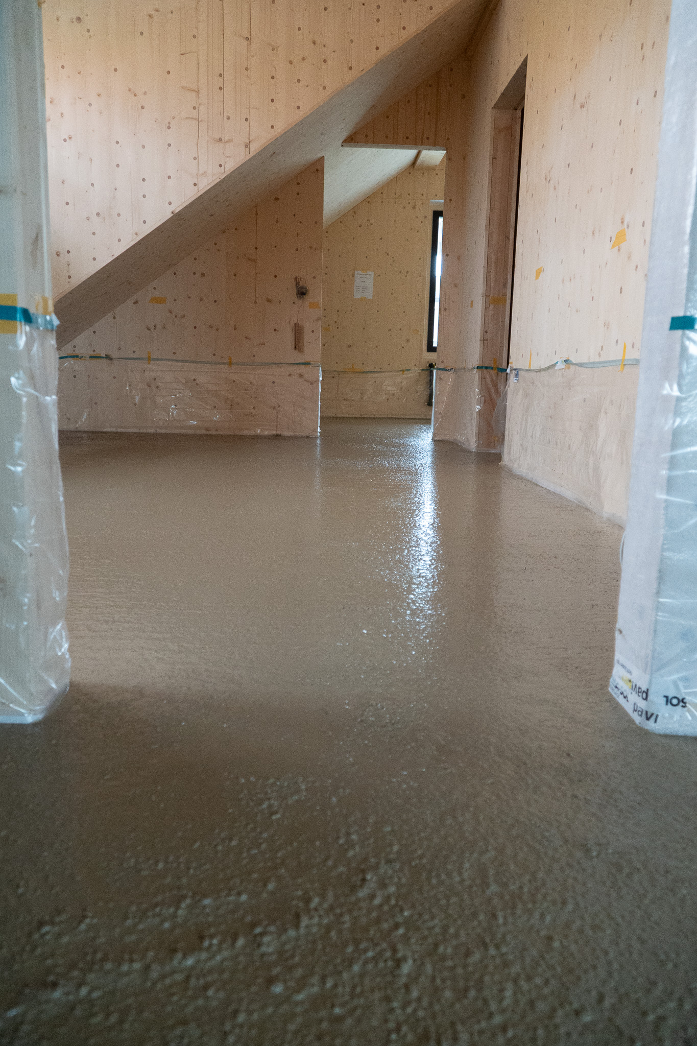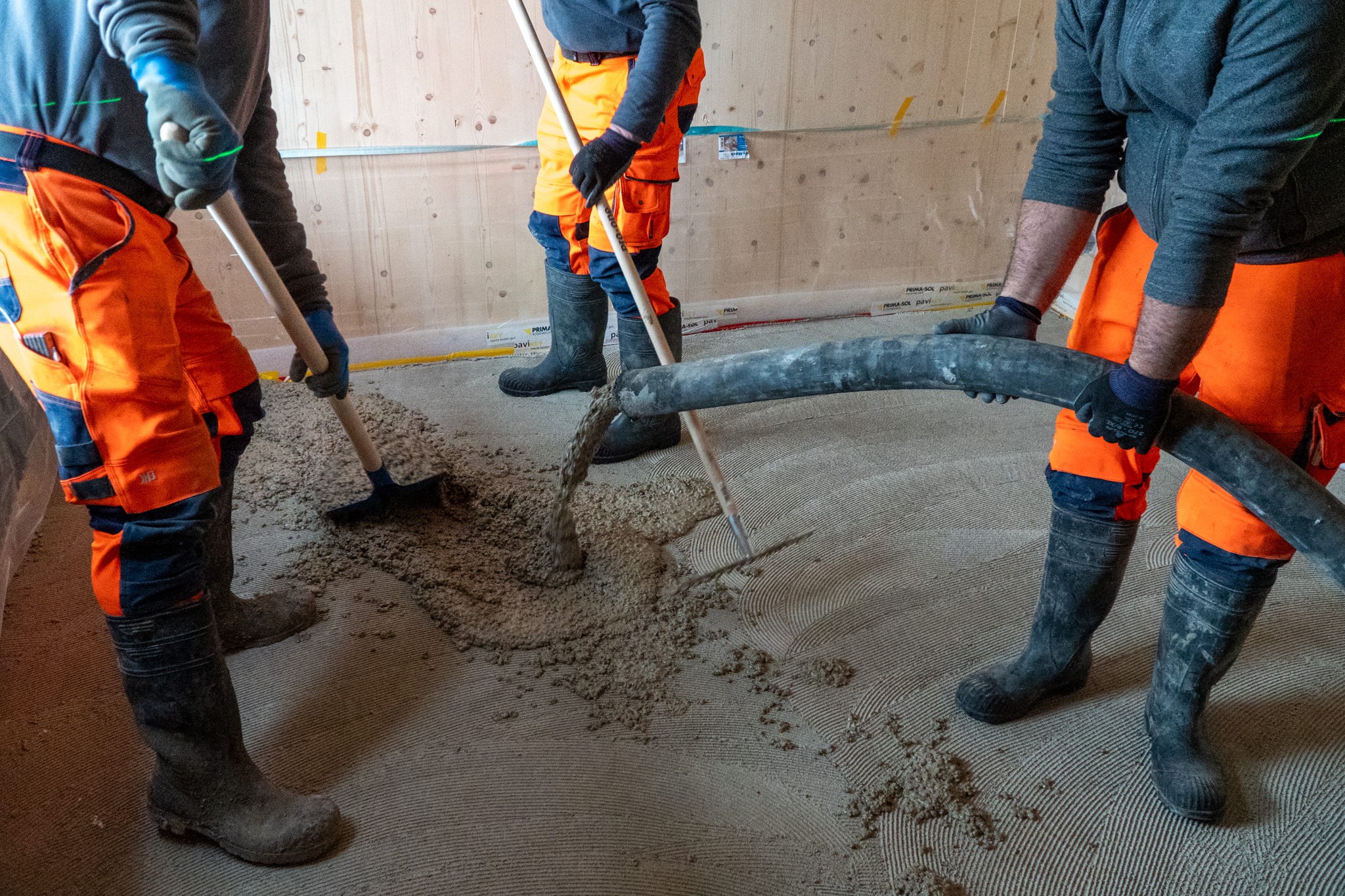 Im zürcherischen Thalwil entsteht derzeit ein Mehrfamilienhaus in Holzbauweise, bei dem KIBECO Cleancrete Nossim zum Einsatz kommt. Mitte Februar wurde der zementfreier Gusslehm mit der Pumpe eingebaut.